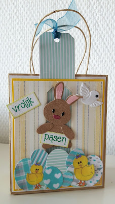 Ik heb een combinatie gemaakt van twee ideetjes op de blogs. Ik zag een paastasje en ik zag een schuifkaart en omdat ik ze allebei erg leuk vond kreeg ik dit resultaat....